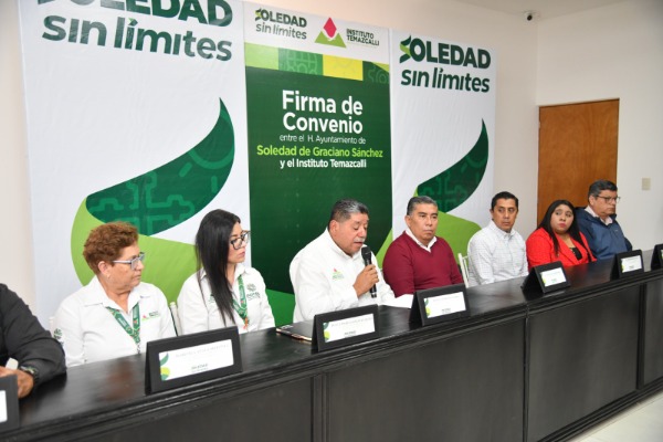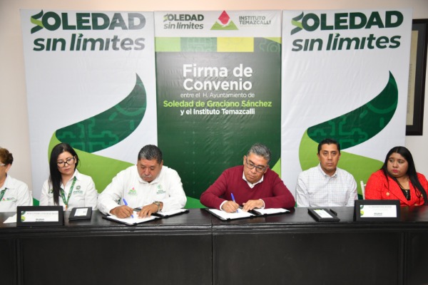 El Alcalde Juan Manuel Navarro Muñiz firmó un convenio de colaboración con el Instituto Temazcalli para fortalecer la atención psicológica y la prevención en escuelas de Soledad de Graciano Sánchez; con este acuerdo se garantiza que las y los alumnos detectados con situaciones como ansiedad, depresión, déficit de atención e hiperactividad o trastornos alimenticios puedan ser canalizados de manera inmediata, priorizando el bienestar de las familias y la cercanía del Gobierno Municipal con quienes requieren apoyo.