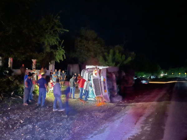 La noche de este jueves, en la carretera libre Valles–Tampico sucedió un accidente en las inmediaciones del ejido La Fortaleza, dentro del municipio de Tamuín, donde un camión de caja climatizada terminó volcado a un costado de la vialidad.