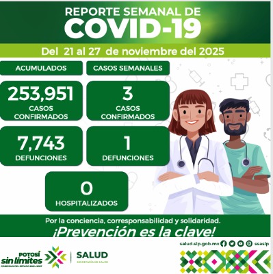 Del 21 al 27 de noviembre del presente año, se registraron 3 nuevos contagios de COVID-19, confirmando el Comité Estatal para la Seguridad en Salud y los Servicios de Salud 253 mil 951 casos totales de esta enfermedad.