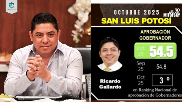 El gobernador de San Luis Potosí, Ricardo Gallardo Cardona, se mantiene entre los líderes estatales mejor evaluados en el país, ubicándose en el tercer lugar con un 54.5% de aprobación, según datos del economista en colaboración con Mitofsky.