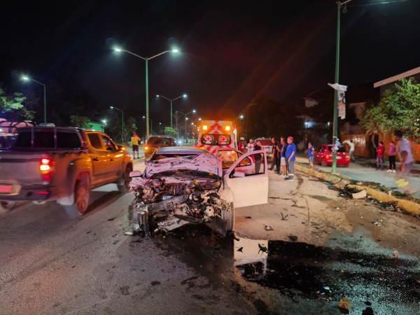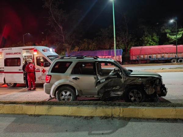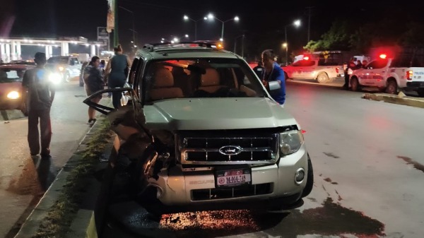Al llegar frente a la alameda, el conductor intentó girar a la izquierda sin medir la distancia, perdió el control, montó el camellón central y colisionó contra una Ford Escape arena que salía de avenida Vicente C. Salazar para cruzar el bulevar.
