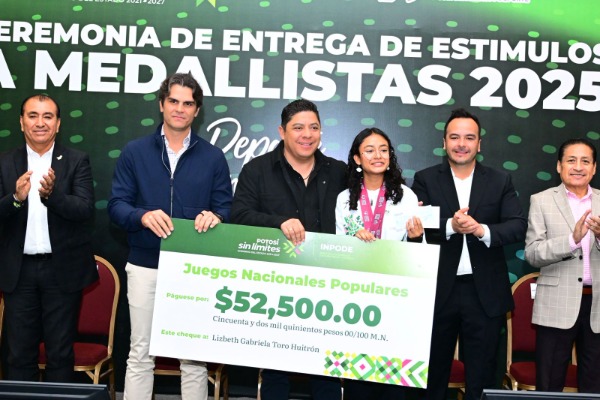 El Gobernador de San Luis Potosí Ricardo Gallardo Cardona, entregó estímulos económicos por 5 millones 160 mil pesos a 136 deportistas que obtuvieron medallas en los Nacionales y Paranacionales Conade 2025, así como en los Juegos Nacionales Populares, donde destacó que el deporte potosino vive su mejor etapa con el trabajo de las y los jóvenes y el apoyo sin límites de la administración.