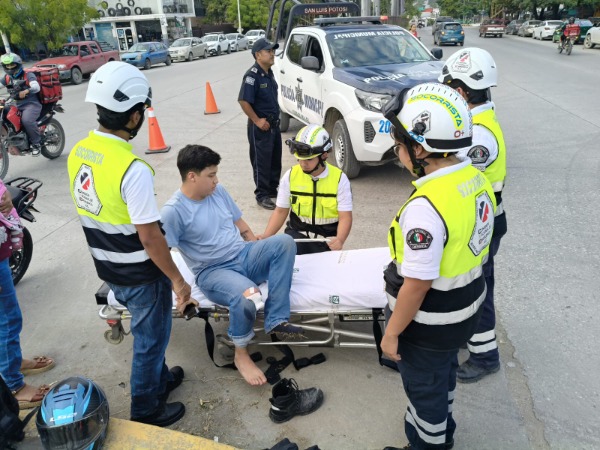 La moto, conducida por Jesús Yahir Rubio, de 22 años, terminó impactada y él cayó al pavimento, sufriendo una lesión en la pierna. Testigos señalaron que el motociclista se dirigía a realizar una entrega cuando ocurrió el choque.