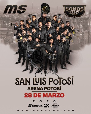 Gracias al clima de paz y tranquilidad generadas por el Gobierno del Estado, San Luis Potosí se prepara para la llegada de su gira "Somos Banda MS 2026", que se presentará el 28 de marzo en la Arena Potosí como parte de la estrategia para fortalecer la cartelera artística y atraer espectáculos de gran formato. Esta política avanza con el impulso directo del Gobernador Ricardo Gallardo Cardona, quien ha promovido actividades con una visión sin límites para beneficio de las familias potosinas.