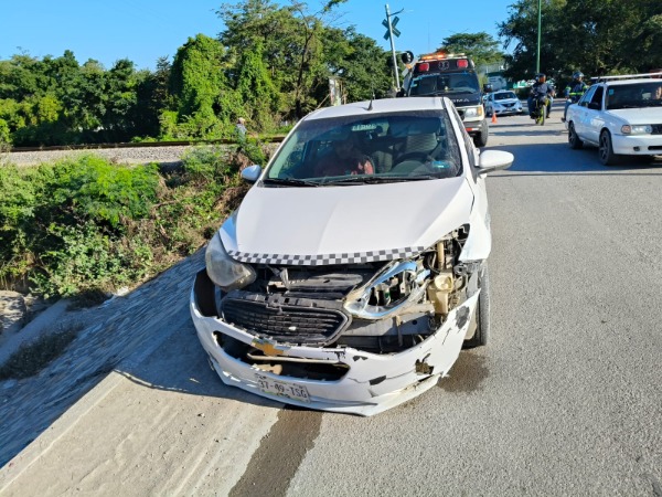 De acuerdo con la información recabada en el sitio, el accidente ocurrió la mañana de este miércoles, cuando el conductor de un taxi Chevrolet blanco con verde decidió efectuar una vuelta en "U" sobre el cruce de las vías, sin verificar que la circulación estuviera libre.