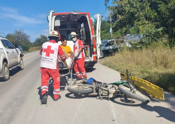 Un accidente vial dejó con lesiones a Luis Manuel, de 24 años de edad y vecino del ejido La Subida, luego de que su motocicleta se proyectara contra una vagoneta en la carretera federal Valles-Mante.