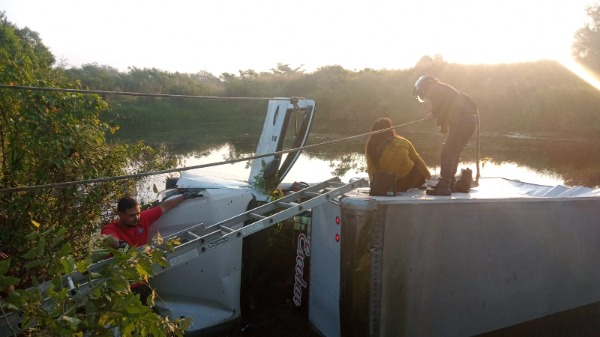 Este accidente sucedió en el kilómetro 65, en el tramo Tamuín-Ébano, a la altura del campo experimental. La unidad afectada es una camioneta de doble rodada con caja cerrada, la cual transportaba medicamentos y se dirigía hacia Tampico.