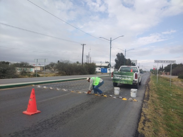 El Gobierno del Estado, a través de la Junta Estatal de Caminos (JEC), realiza trabajos de conservación en la ruta hacia el Aeropuerto Internacional de San Luis Potosí, con acciones de pintura en topes, colocación de bollas y limpieza de laterales, para garantizar traslados más seguros, eficientes y cómodos.