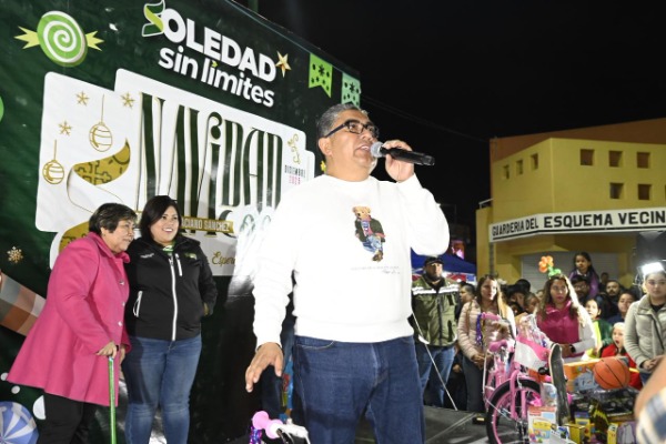 Juan Manuel Navarro Muñiz, Alcalde de Soledad de Graciano Sánchez, cumplió el quinto día llevando un mensaje de paz y alegría a las familias del municipio; en esta ocasión, familias de la zona oriente recibieron estas emocionantes Posadas navideñas, al recorrer las colonias Villa Alborada, Primera de Mayo, Quintas de la Hacienda, Cactus y La Sierra, donde entregó juguetes a niñas y niños y cobijas a adultos mayores, como parte de una estrategia de cierre de año enfocada en llevar bienestar directo a los hogares.