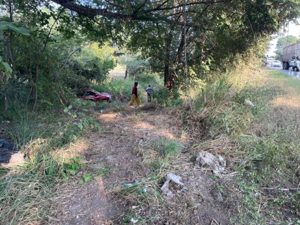 Tras salirse de la superficie de rodamiento, el vehículo cayó a un desnivel a un costado de la carretera, quedando entre la maleza.