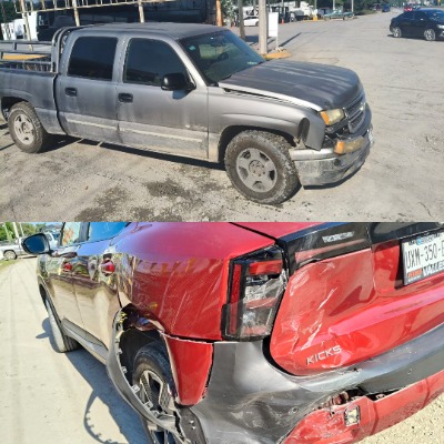 Al hacerlo, no se percató de la circulación de una camioneta Nissan Kicks, modelo reciente, a la que terminó impactando por la parte posterior.