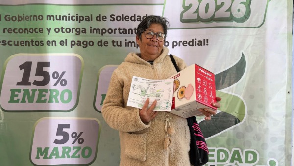 Este viernes 2 de enero, el Ayuntamiento de Soledad de Graciano Sánchez registró un exitoso inicio del programa "Contribuyente Cumplido 2026", con una amplia participación ciudadana desde las primeras horas del día para aprovechar el 15 por ciento de descuento vigente durante el mes de enero; la elevada afluencia motivó la apertura de las cajas recaudadoras desde las seis de la mañana, priorizando la atención a adultos mayores para evitar tiempos prolongados de espera y reafirmar una política de cercanía con las familias y sectores vulnerables, como lo ha instruido el Alcalde Juan Manuel Navarro Muñiz.