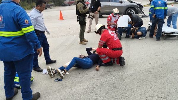 El percance ocurrió cuando una camioneta Nissan Rogue color gris, que era conducida por una mujer, circulaba por la calle Vicente C. Salazar y al intentar incorporarse al bulevar no respetó la preferencia de paso, cortándole la circulación a una motoneta Italika gris.