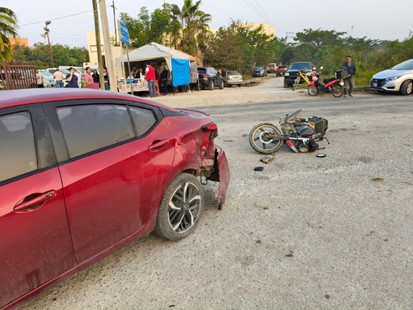 El percance se registró cuando el motociclista, quien conducía una Italika color negro, se desplazaba por el libramiento con rumbo de la carretera Valles–Tampico hacia el Centro Cultural. Según su versión, un automóvil Nissan Versa color guinda, modelo reciente, salió de manera intempestiva del carril de estacionamiento y atravesó la vía para intentar incorporarse al retorno, lo que le cerró el paso y provocó el impacto.