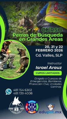 Asimismo, los días 20, 21 y 22 de febrero, se impartirá en Ciudad Valles el curso de Perros de Búsqueda y Rescate en grandes áreas y estructuras colapsadas, con instructores externos, entre ellos Israel Arauz, exelemento de la Marina y manejador de la perrita Frida. Esta capacitación tendrá un costo de 3 mil pesos, incluye teoría y práctica en escenarios reales y no requiere experiencia previa ni contar con perro.