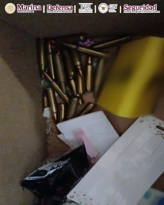 En los cateos se aseguró armamento, cartuchos útiles de diversos calibres, envoltorios con una sustancia con características similares a la droga, vehículos, dispositivos electrónicos, equipo de cómputo y diverso material utilizado para la comisión de delitos.