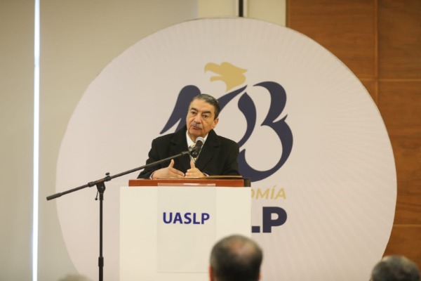 Para inaugurar el Diálogo Universitario, el rector de la Universidad Autónoma de San Luis Potosí, doctor Alejandro Javier Zermeño Guerra, destacó que cumplir 103 años de autonomía convierte a la institución en una de las más antiguas de México y una de las cuatro o cinco más antiguas de América. Recordó que, como todos los entes autónomos, a lo largo de este siglo la UASLP ha enfrentado distintos intentos de intervención en su soberanía.
