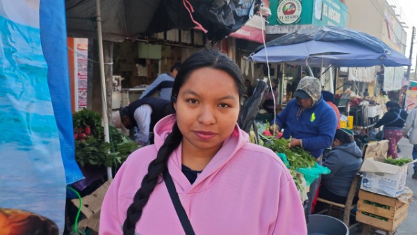La comerciante Marcela Hernández Aguilar, originaria de Tam ápatz, Aquismón, relató las dificultades que enfrenta para poder vender sus productos en Ciudad Valles, donde el frío ha reducido la clientela y ha incrementado los gastos, principalmente en transporte y alojamiento improvisado.