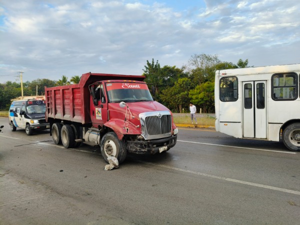 En ese momento, un camión tipo torton color rojo, que circulaba del Hospital General hacia la zona centro, no alcanzó a reaccionar a tiempo.
