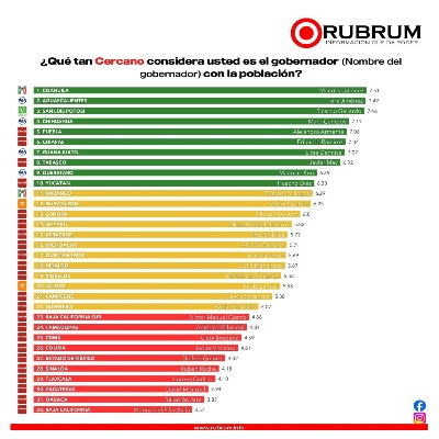 - El Gobernador de San Luis Potosí obtiene calificaciones aprobatorias en todos los rubros evaluados y se consolida como uno de los mandatarios mejor evaluados del país.