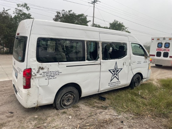 El percance se registr贸 la ma帽ana de este domingo, a la altura del rancho El Infiernito, donde una camioneta Nissan blanca tipo panel, con raz贸n social CPA Seguridad Privada, termin贸 fuera de la cinta asf谩ltica y volcada.