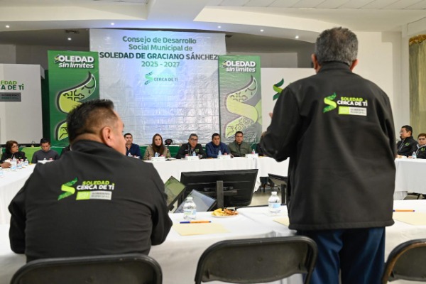 Juan Manuel Navarro Muñiz, Alcalde de Soledad de Graciano Sánchez, encabezó la Décimo Primera Sesión Ordinaria del Consejo de Desarrollo Social Municipal, donde consejeras y consejeros ciudadanos de distintos sectores reconocieron avances tangibles a solicitudes planteadas en encuentros previos, resultado de un gobierno que trabaja por encomienda del Alcalde y mantiene una escucha permanente para atender de cerca a las familias soledenses, en especial a quienes más lo necesitan.