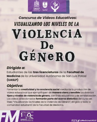 La Facultad de Medicina de la Universidad Autónoma de San Luis Potosí (UASLP) lanzó el concurso de video educativo "Visualizando los niveles de la violencia de género", una iniciativa dirigida a su comunidad estudiantil que busca fortalecer la prevención, la información y la conciencia sobre este problema dentro y fuera de los espacios universitarios.