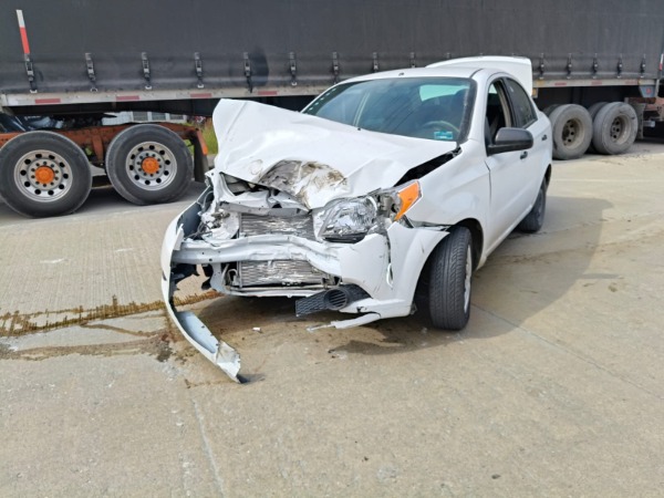 El primer accidente involucró a un automóvil Chevrolet Aveo blanco, conducido por un joven originario de Tampico, Tamaulipas, quien circulaba con dirección al bulevar México-Laredo. Al tomar la curva, el conductor perdió el control del vehículo, salió del carril de circulación y terminó impactándose contra las llantas de un tráiler que se encontraba estacionado en el lugar.