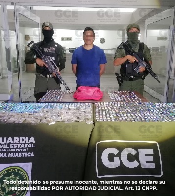 De acuerdo a los protocolos de actuación policial y por la cantidad de presunta droga decomisadael presunto fue quedará a disposición de la FGR con sede en Ciudad Valles.