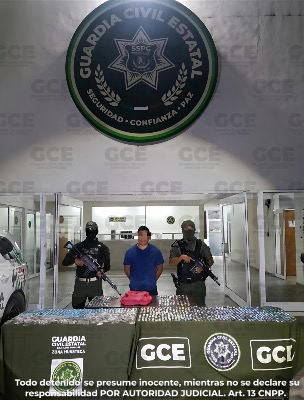 La acción operativa se llevó a cabo en el Libramiento José María Morelos y calle 4 de Agosto, colonia Santa María II, luego de avistar a quien se identificó como Daniel N. de 32 años de edad, quien a su vez observó un comportamiento evasivo al notar la presencia de las fuerzas estatales de seguridad.