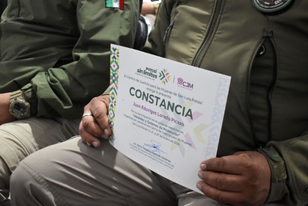 El Centro de Justicia para las Mujeres (CJM) entregó reconocimientos a 35 integrantes de la Guardia Civil Municipal (GCM) de Soledad de Graciano Sánchez por su participación en la capacitación sobre órdenes y medidas de protección dirigidas a mujeres víctimas de violencia. La ceremonia forma parte de las acciones que se desarrollan bajo la conducción del Gobernador Ricardo Gallardo Cardona para reforzar la atención institucional sin límites.