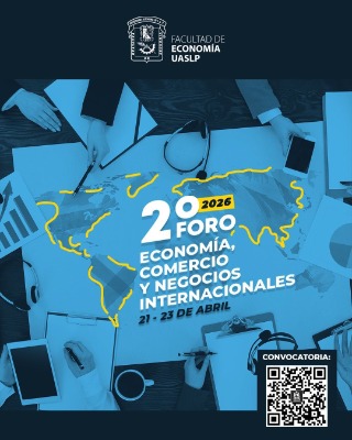 La Facultad de Economía de la Universidad Autónoma de San Luis Potosí (UASLP) llevará a cabo del 22 al 24 de abril de 2026 el "2º Foro Nacional de Economía, Comercio y Negocios Internacionales", que se realizará en el Centro de Emprendimiento e Innovación Universitario. El anuncio fue realizado por la directora de la entidad, doctora María Isabel Graciela Vélez Dávila, acompañada por los doctores Oliver René Arroyo Leos y Juan Carlos Yánez Luna, docentes de la Facultad.
