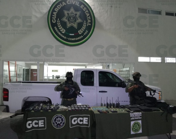 Como parte de las acciones permanentes de seguridad y vigilancia desplegadas en la zona Huasteca y tras recorridos operativos en el municipio de El Naranjo, la Guardia Civil Estatal localizó y aseguró un vehículo en aparente estado de abandono con armamento, equipo táctico y sustancias con características propias a estupefacientes.