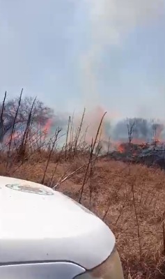 Protección Civil de Ciudad Fernández, en coordinación con el Cuerpo de Bomberos, trabaja para controlar un incendio que avanza sobre el boulevard del Refugio y que se aproxima a domicilios ubicados en el sector.