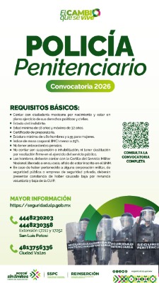 La Secretaría de Seguridad y Protección Ciudadana del Estado (SSPC), a través de la Academia de Seguridad y Protección Ciudadana, invita a mujeres y hombres a participar en la convocatoria para integrarse a la Policía Penitenciaria.
