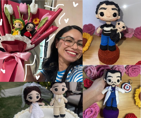 Con el tiempo, la artesana se especializó en amigurumis personalizados, reproduciendo incluso a personas fallecidas con gran detalle. "Me enfocaba en que el amigurumi fuera único, que tuviera todos los detalles para que quien lo recibiera sintiera que la persona estaba con él", explicó.