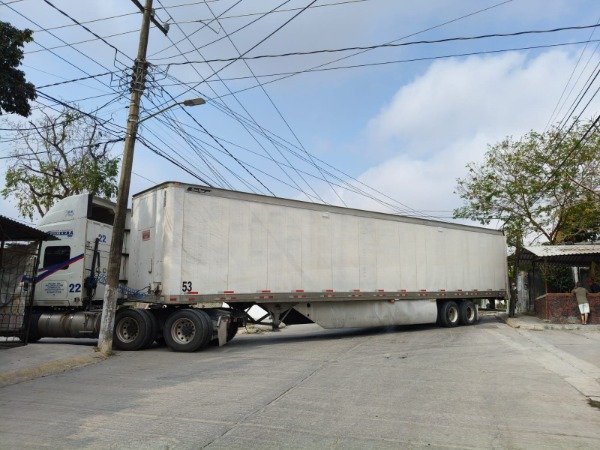Debido al impacto, el tráiler quedó atravesado en la intersección, lo que generó momentáneamente afectaciones a la circulación de vehículos en esa zona.