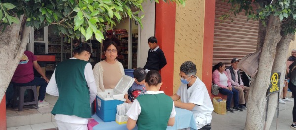 El día de ayer lunes, una brigada de enfermeros de este nosocomio realizó una jornada de vacunación al exterior de una tienda de autoservicio, sobre la avenida "Benito Juárez" esquina con "Blas Escontria", en la zona centro; labor que realizarán posteriormente en puntos estratégicos.