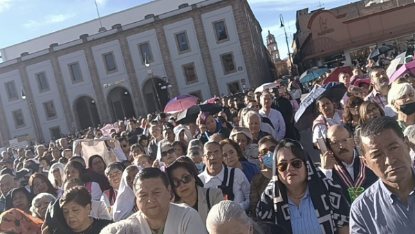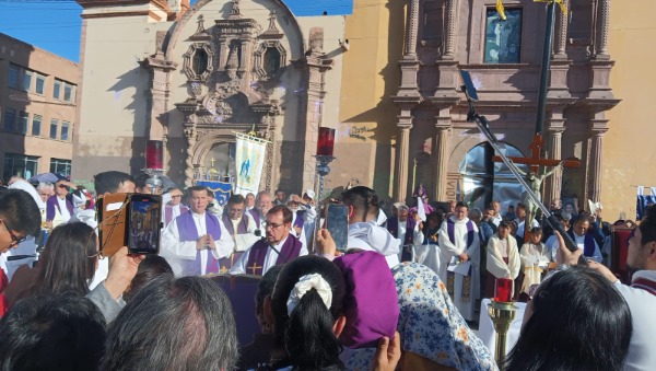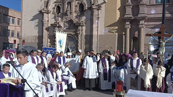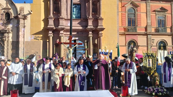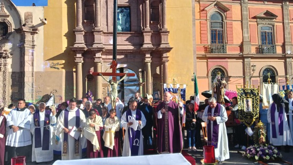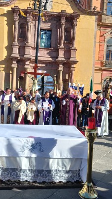 Decenas de personas acudieron al lugar para participar en la ceremonia religiosa realizada en el Centro Histórico de San Luis Potosí.