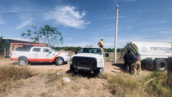 Personal de Protección Civil y Bomberos de Ciudad Fernández atendió un reporte de incendio de pastizal en la calle Porfirio Díaz, en la colonia Refugio.
