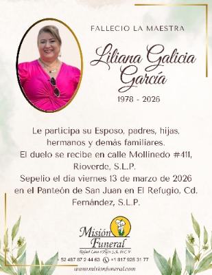 Gran consternación ha generado en la comunidad educativa de la primaria ubicada en la colonia Infonavit Ojo de Agua, en Rioverde, la noticia sobre el fallecimiento de la maestra Liliana Galicia García.