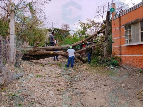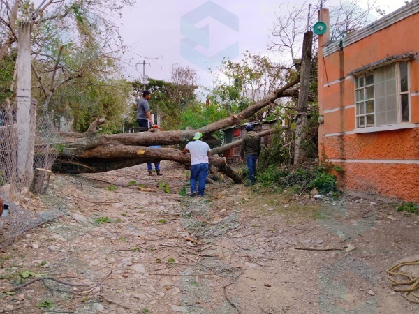Elementos de Protección Civil acudieron de inmediato al lugar para realizar las maniobras necesarias y retirar el árbol, que quedó atravesado sobre la calle y los domicilios.