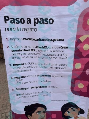 Los padres que no puedan acudir al kiosco de la plaza tienen la opción de acudir a las oficinas de la Coordinación Nacional de Becas de Bienestar en la calle Hidalgo número 106, donde también se ofrece apoyo para completar el registro.