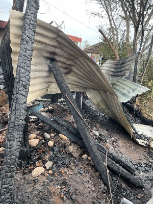 El siniestro afectó principalmente un espacio construido con materiales rústicos, utilizado como cocina, el cual fue consumido junto con los utensilios que se encontraban en su interior.