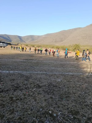 Ahora, con la llegada de la aeronave se espera avanzar en los trabajos de combate, ya que para llegar hasta la ubicación del siniestro se tiene que caminar más de 4 horas.