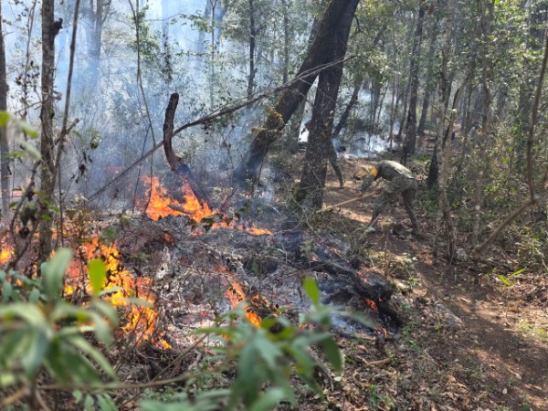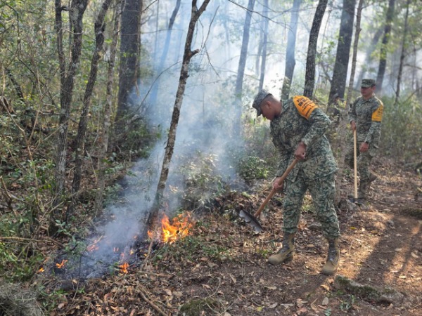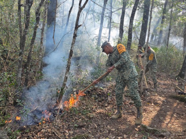 Informó que como parte de la implementación del Plan DN III-E, la Comandancia de la Zona Militar desplego más de 30 efectivos militares, y para incrementar la efectividad en la sofocación del incendio, arribó una aeronave de ala rotativa MI-17, perteneciente a la Guardia Nacional, la cual será fundamental para la reubicación de brigadistas, vuelos de reconocimiento y para la realización de descargas de agua con helibalde en el incendio de la comunidad Francia Chica.