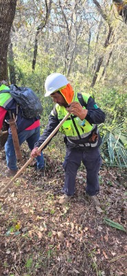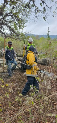 Diariamente en un horario de 05:00 a 20:00 hrs, más de 120 hombres combatientes realizan las tareas conducentes, haciendo uso de motosierras, sopladoras, rastrillos, machetes y escobas metálicas. Aunado a ello, cuentan con el equipo de protección necesario para estos casos portando ropa de aramadida, nomex, algodón así como casco forestal, gogles, guantes de piel y bota de seguridad sin casquillo.