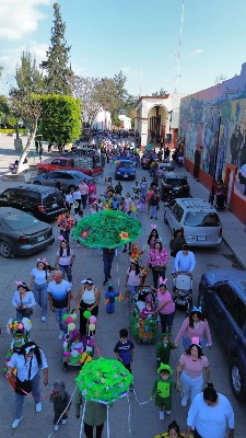 Fue la tarde del jueves que realizaron un desfile en carros alegóricos por diversas calles de la ciudad, donde portaban diversos trajes de animales y flora, para representar con ello la llegada de esta estación del año.