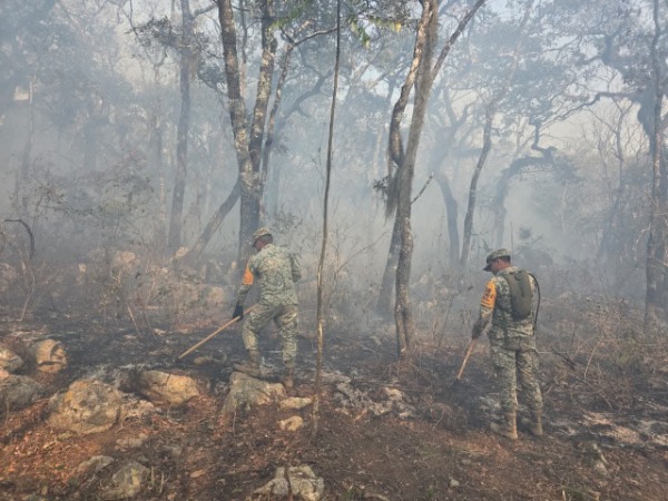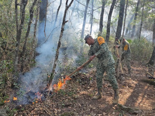 Las acciones en conjunto con el Ejército Mexicano, con el Plan DN-III-E, han dado el resultado esperado, con el uso de un helicóptero de la Guardia Nacional para el traslado de personal combatiente y de igual forma para descargas de agua.