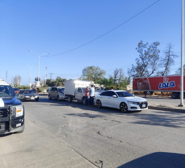 Por fortuna fueron sólo daños materiales los registrados tras el choque múltiple por alcance ocurrido en el bulevar Carlos Jonguitud Barrios del municipio de Rioverde, la tarde del viernes.